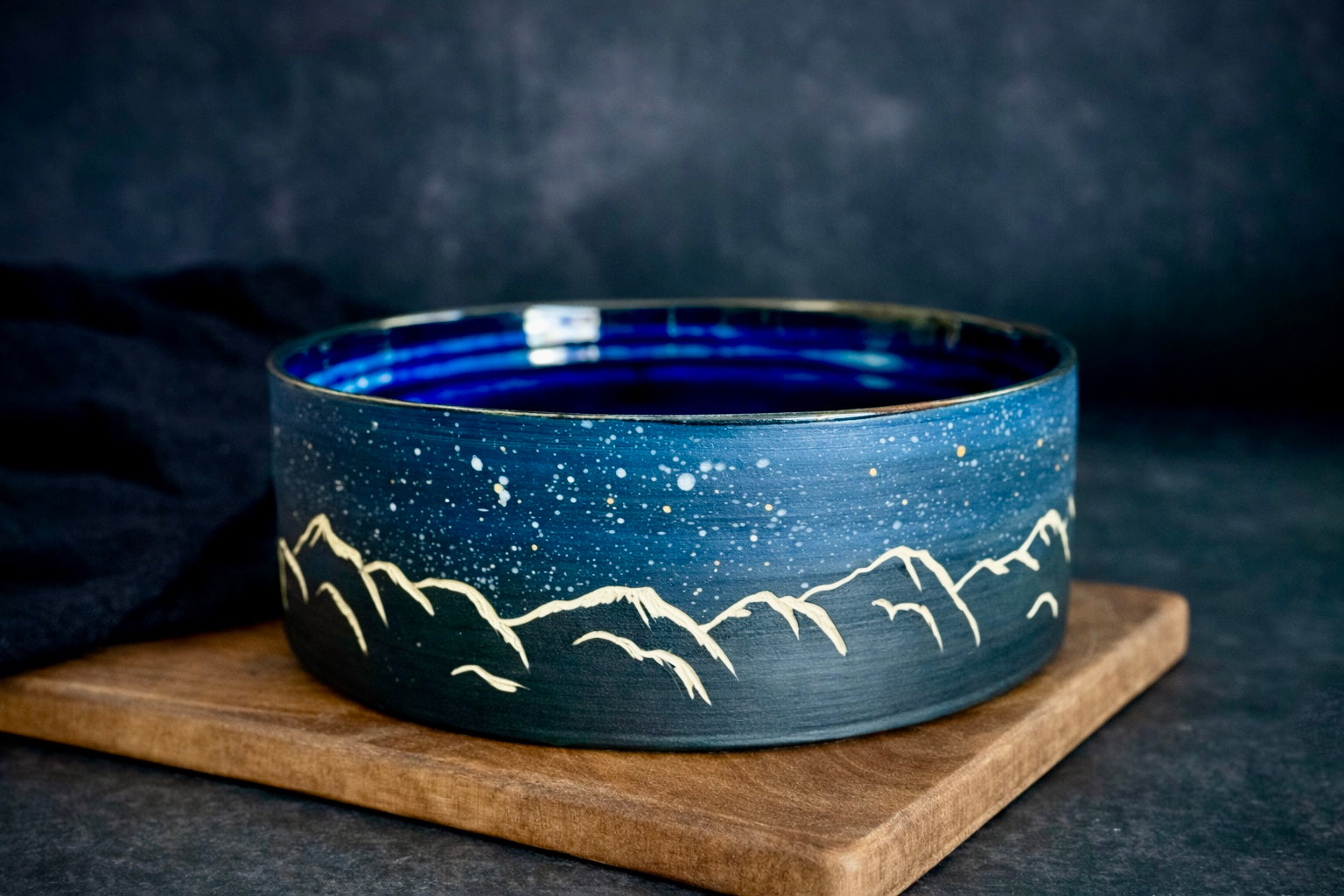 Mittlerweile habe ich meine eigene, kleine Werkstatt und fertige für Euch (und mich natürlich auch ;-p) Keramik. Größtenteils auf der Drehscheibe entstehen Tassen, Becher und Schüsseln. Aber auch Teller und das ein oder andere Dekostück ist mal dabei.