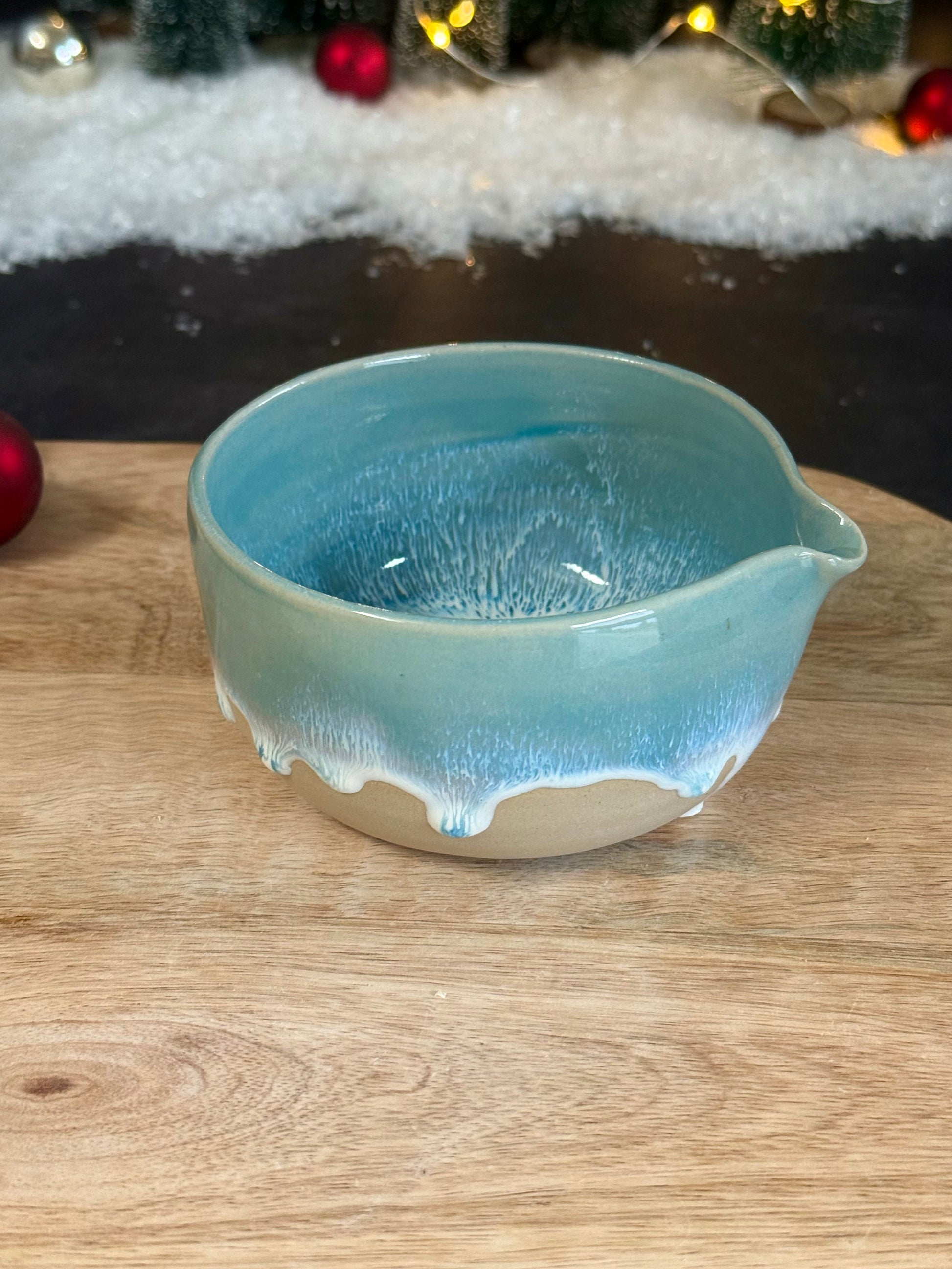 Matchaschale in der Glasur "Waves" mit Ausgießer (langsam gießen, dann tropft auch Nix)